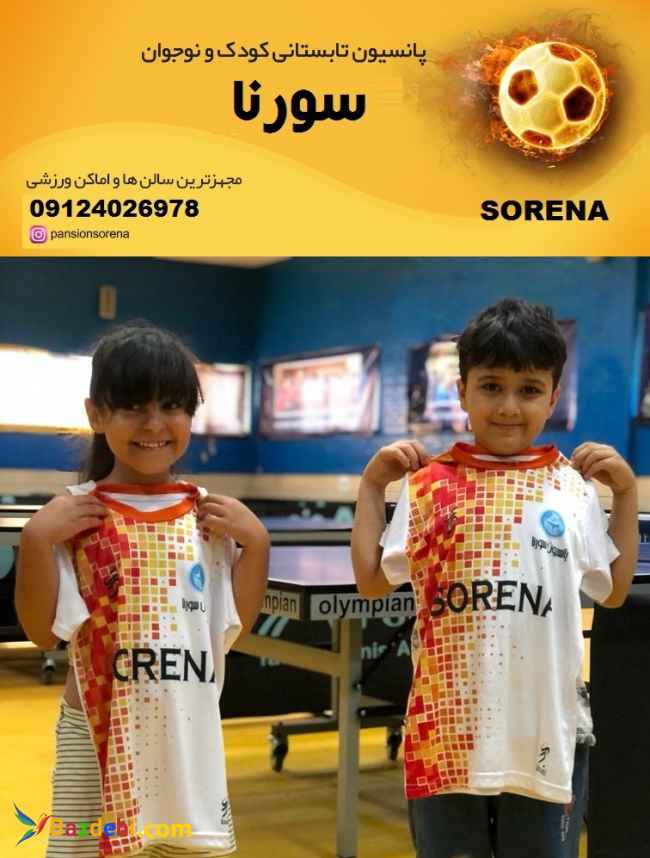 پانسیون تابستانی ورزشی کودک و نوجوان سورنا نگران تابستان فرزندان خود نباشید مکانی مطمئن برای پر کردن اوقات فراقت فرزندان شما مجهزترین سالن ها و اماکن ورزشی ارایه گواهی پایان دوره ارایه ناهار گرم ارایه سرویس رفت وآمد با حداقل هزینه ارایه تجهیزات ورزشی :پیراهن- شورت ورزشی آموزش توسط مربیان برجسته دانشگاه تهران و مورد تایید فدراسیون رشته مربوطه کلاس تابستانی ورزشی کودک و نوجوان سورنا راه های ارتباطی شماره‌های تماس : - 09124026978 - آدرس اینستاگرام : http://instagram.com/pansionsorena