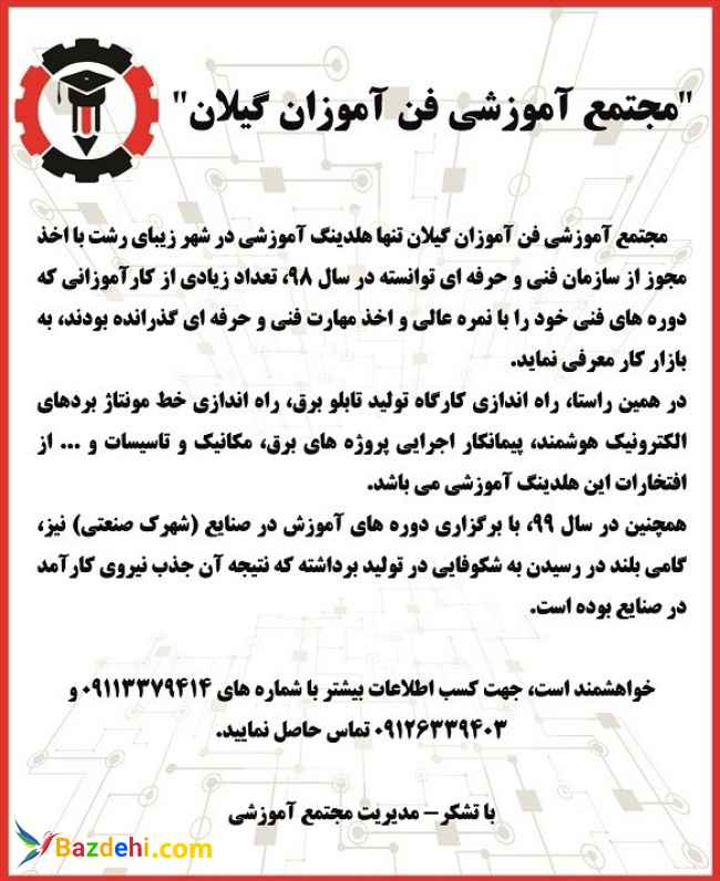 آموزشگاه فن اموزان ازجمله مراکزی است که دوره های خود را با در نظر گرفتن تمامی استانداردها و زیر نظر سازمان فنی و حرفه ای برگزار می نماید که پس از پایان دوره به راحتی می توانید وارد بازار کار شده و کسب درآمد نمایید. از جمله امتیازات این آموزشگاه، داشتن کارگاه های مجهز اموزشی و در اختیار گذاشتن کارگاه به کاراموزان جهت تمرین بیشتر، استفاده از اساتید برگزیده و منتخب استان و پشتیبانی اموزشی مادام العمر (پشتیبانی دائمی حتی بعد از اتمام کلاس های آموزشی) می باشد. برگزاری دوره های برق صنعتی، برق ساختمان، ایمنی در برق، برق خودرو و تاسیسات، سیم پیچی الکتروموتورهای تکفاز و سه فاز، طراحی و مونتاژ تابلوهای برق با نرم افزار اتوکد الکتریکال، PLC و LOGO دارای مجوز رسمی از سازمان فنی و حرفه ای کشور شماره تماس: 01333253653 و 09126339403 ادرس: رشت، خیابان معلم، روبروی استانداری، خیابان طالقانی، طالقانی سوم، پلاک 22