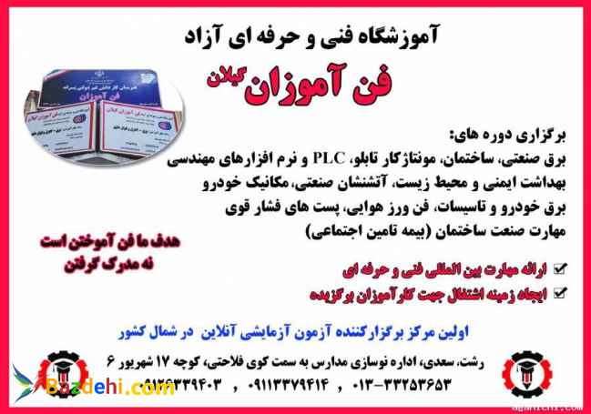 رشت- خیابان نوسازی مدارس- کوچه 17 شهریور 6- اموزشگاه فن اموزان