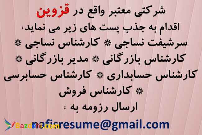 شرکتی معتبر واقع در قزوین جذب نساجی - بازرگانی - فروش - مالی