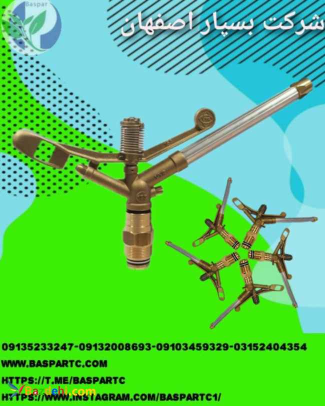 شرکت بسپار آبپاش ویر VYR 155 ، آبپاش زراعی (ضربهای) با شعاع پاشش زیاد و از نوع تمام دور میباشد، جنس بدنه آبپاش از برنج بوده و توسط رابط نر ۱/۴ ۱ اینچ به رایزر متصل میشود. جنس محور و لوله خروجی و واشر و اورینگ این آبپاش از فولاد ضد زنگ (stainless steel) و پلاستیک مخصوصی که مقاومت بالایی دارد ساخته شدهاند. نازل استاندارد آبپاش در فشار ۴ الی ۷ بار با شعاع پاشش ۲۵ الی ۳۵ متر کار میکند. این آبپاش دارای ۳ نازل میباشد. شعاع پاشش: ۲۶ الی ۲۸٫۵ متر دبی خروجی : ۲٫۶۷ الی ۳٫۵۵ لیتر در ثانیه معادل ۹٫۶ الی ۱۲٫۸ متر مکعب در ساعت زاویه نازلهای آبپاش نسبت به افق: نازلهای اصلی ۲۸ درجه و نازل کوچک ۱۳ درجه حداکثر ارتفاع آب خروجی از این آبپاش برابر ۳٫۸ متر است نازلهای آبپاش: نازل اصلی برای پاشش با شعاع زیاد، نازل دوم برای پاشش با شعاع متوسط و نازل سوم برای پاششهای با شعاع کم ابعاد آبپاش : ارتفاع ۳۰ و عرض ۴۸ سانتیمتر وزن آبپاش: ۱۶۷۲ گرم از آبپاش ویر ۱۵۵ برای آبیاری بارانی مزارع کشاورزی با محیط باز استفاده میشود. آبپاش ویر برای محوطههای وسیع و دبی ورودی آب متوسط-زیاد مناسب است. 09132008693 09135233247 03152404354