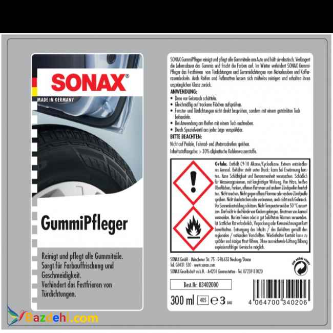 قطعات خودرو را تمیز و نگهداری می کند و آنها را حفظ می کند. طول عمر لاستیک را گسترش می دهد و رنگ ها را رنگ می کند. همچنین به راحتی تمیز می کند لاستیک و کف تشک، و ظاهر تازه خود را تازه بازیابی می کند.
