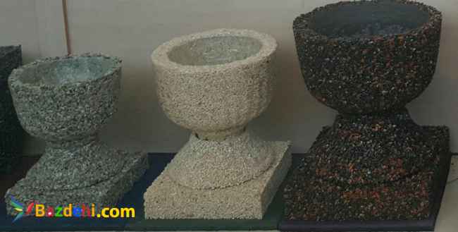 گلدان های مهندسی پرتیکان مناسب برای باغ ویلا شهرداری ها فضای حیاط در طرحها و رنگهای مختلف تشکیل شده از خورده سنگهای مرمرطبیعی با جلوه و زیبایی خاص