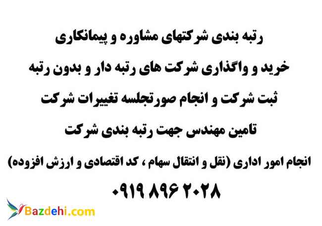 رتبه بندی شرکت، ثبت شرکت ، واگذاری شرکت،تامین مهندس