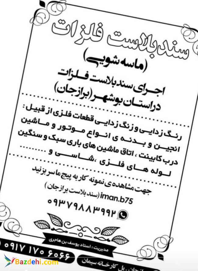 اجرای سندبلاست فلزات در استان بوشهر (برازجان)