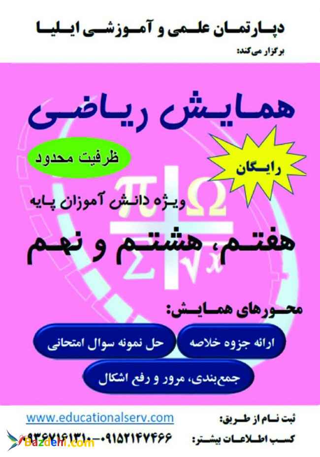 همایش رایگان ریاضی ویژه دانش آموزان متوسطه اول مهلت ثبت نام: تا ساعت 23 روز شنبه مورخ 21 اردیبهشت ماه