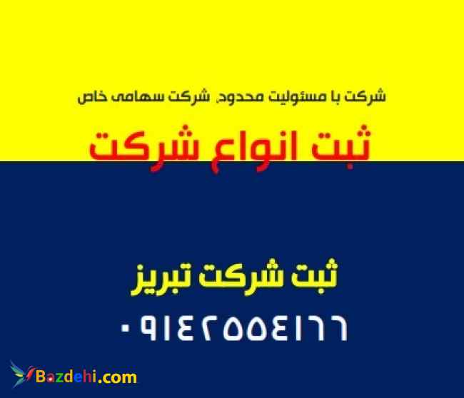 ثبت انواع شرکت در تبریز در کمترین زمان ، مدیران ثبت تخصصی ترین مرجع ثبت شرکت در تبریز ، برای کسب اطلاعات بیشتر با شماره تلفن زیر تماس حاصل نمایید : 09142554166 وبسایت : modiransabt.com