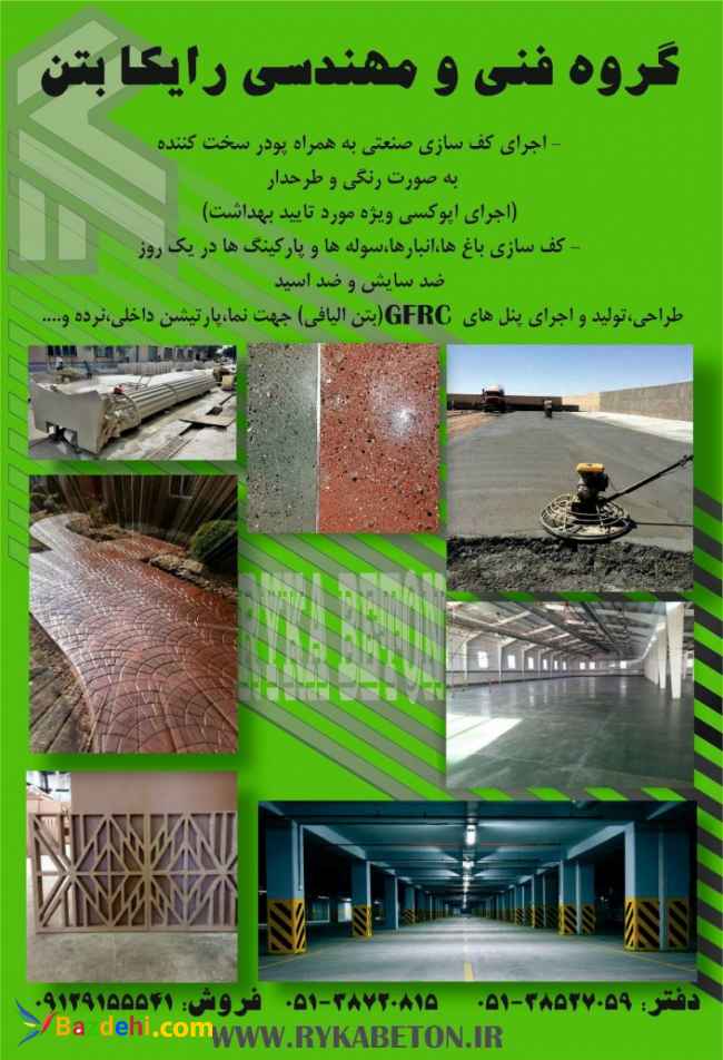 اجرای کف سازی صنعتی به همراه پودر سخت کننده اجرای اپوکسی ویژه مورد تایید بهداشت کف سازی باغ ها،سوله ها،انبارها،پارکینگ ها،کارخانجات،زمین های ورزشی و محوطه ضد سایش و ضد اسید بتن ساده،رنگی و صیقلی