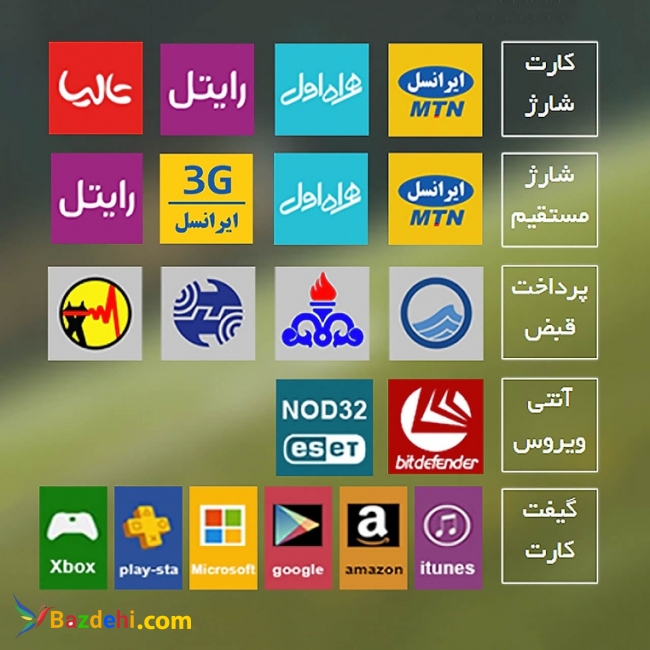 خرید شارژ ( کارت شارژ، شارژ وایمکس، پرداخت قبوض، گیفت كارت و لایسنس آنتی ویروس ) در موب تجارت