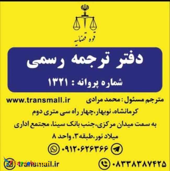 دفتر ترجمه رسمی ترنسمال (شماره پروانه 1321) دارای مجوز رسمی از قوه ی قضائیه ترجمه ی کلیه ی مدارک و اسناد به تمامی زبان ها اخذ تاییدات دادگستری و خارجه در کوتاه ترین زمان ترجمه غیر رسمی (مقالات، بروشورها، کتاب، کاتالوگ و…) به کلیه ی زبان ها تدوین انگیزه نامه تکمیل فرم های مهاجرتی تدوین رزومه تحصیلی و شغلی تلفن همراه : 09120626366 تلفن ثابت : 08338387425 آدرس سایت: http://Www.transmall.ir اینستاگرام: https://www.instagram.com/@transmall.ir ایمیل این آدرس ایمیل توسط spambots حفاظت می شود. برای دیدن شما نیاز به جاوا اسکریپت دارید نام و نام خانوادگی محمد مرادی نام واحد تجاری دارالترجمه رسمی ترنسمال (شماره پروانه 1321) استان کرمانشاه امکانات کارت خوان, مشاوره رایگان, پارکینگ, فضای باز آدرس کرمانشاه، نوبهار، چهار راه سی متری دوم به سمت میدان مرکزی، جنب بانک سینا، مجتمع میلاد نور (نبش کوچه ی 118)، طبقه 3،واحد 8 ارزانترین دارالترجمه رسمی در کرمانشاه انگیزه نامه برای اپلای انگیزه نامه تحصیلی برای کانادا انگیزه نامه رزومه انگیزه نامه کاری ایران تایپیست هزینه ترجمه ترجمه انگیزه نامه ترجمه تخصصی فارسی به انگلیسی ترجمه رسمی مدارک ترجمه رسمی مدارک تحصیلی ترجمه سابقه کار ترجمه فوری مدارک ترجمه کاتالوگ ترجمه مدارک تحصیلی ترجمه مدارک تحصیلی برای ترکیه ترجمه مدارک تحصیلی به انگلیسی ترجمه مدرک تحصیلی برای مهاجرت ترجمه مدرک تحصیلی به انگلیسی ترجمیک قیمت ترجمه آنلاین چگونه انگیزه نامه را شروع کنیم دارالترجمه ترنسمال دارالترجمه رسمی دارالترجمه رسمی آلمانی دارالترجمه رسمی ترنسمال دارالترجمه رسمی کرمانشاه دارالترجمه عالی در کرمانشاه دارالترجمه فوری دانلود برنامه رزومه ساز دانلود فرم های سفارت کانادا رزومه ساز انگلیسی رزومه کاری رزومه کاری چیست سفارش انگیزه نامه فرم imm1294e فرم اطلاعات فردی ویزای کانادا فرم ثبت نام مهاجرت به کانادا برای افغانها فرم کاستودین فرم های مهاجرت قیمت ترجمه انگلیسی به فارسی سال ۱۴۰۰ قیمت ترجمه انگلیسی به فارسی سال 99 قیمت ترجمه فیلم قیمت ترجمه مدارک تحصیلی لیست دارالترجمه رسمی لیست دارالترجمه های
