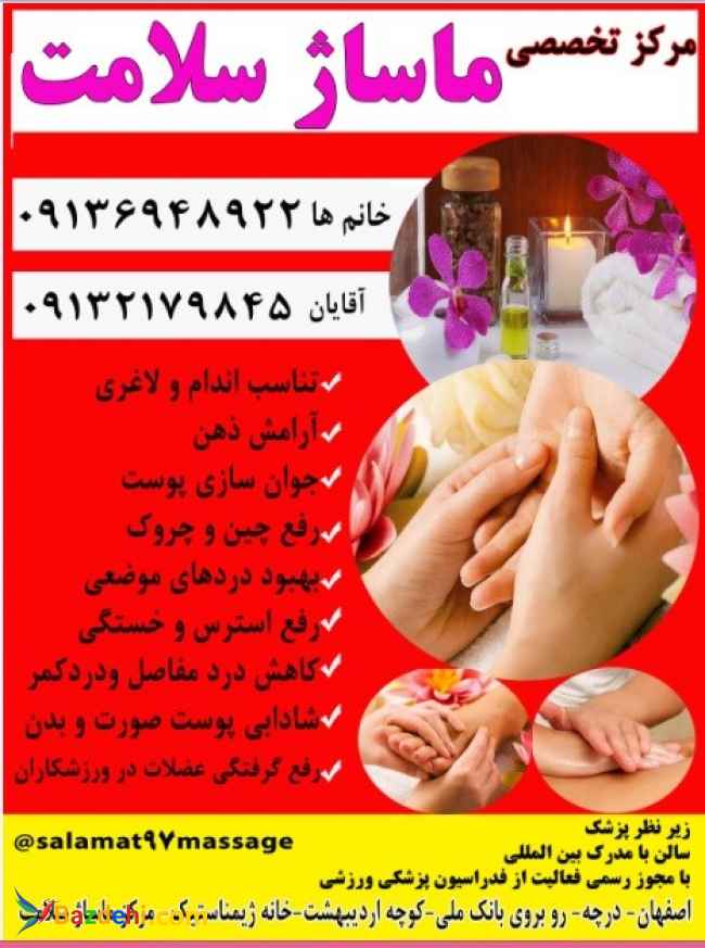 اصفهان.درچه.روبروی بانک ملی.کوچه اردیبهشت.خانه ژیمناستیک.مرکز ماساژ سلامت
