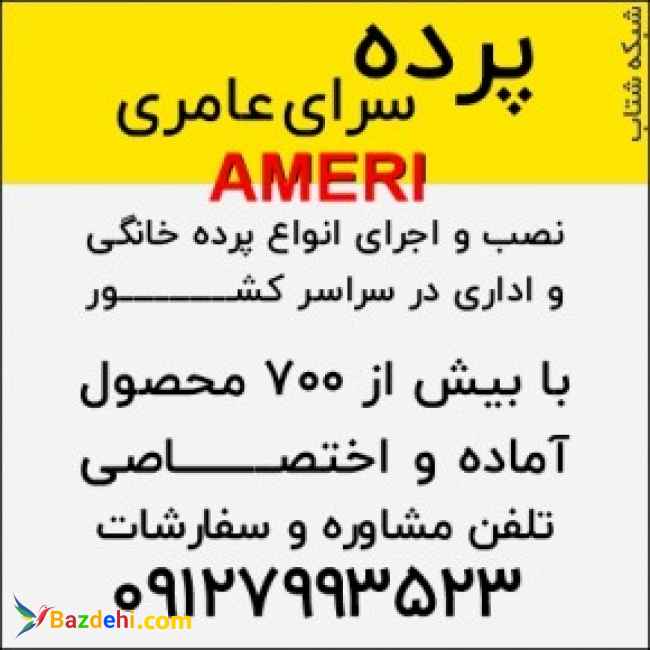 مجموعه پرده سرای عامری با بیش از 700 تنوع رنگ و محصولات انواع پرده در سایزهای آماده و اختصاصی اندازه گیری در محل ( رایگان ) کلیه محصولات و خدمات زیر انجام می شود دوخت پرده خیاط پرده نصاب پرده نصب پرده پرده زبرا سه بعدی پرده بامبو پرده حصیری انواع پارچه پرده ای پرده مخمل پرده پانچ پرده حریر پرده حریر کتان حریر پرده ای پارچه پرده پرده اشپزخانه پرده آشپزخونه پرده آشپزخانه پرده سالن پرده مدرنارزانترین زبرا از کجا کوسن بخریم اموزش دوخت پردهای اشپزخانه اموزش دوخت پردهای پفکی اموزش دوخت پردهای چین دار اموزش دوخت پردهای سلطنتی اموزش نصب پردهای پانچی اموزش نصب پردهای پلیسه اموزش نصب پردهای جدید انواع پارچه پردهای ترک انواع شید برای پنجره انواع کرکره منزل آشپزخانه مدل پردهای زبرا سه بعدی آموزش دوخت پردهای پلیسه بالش خوب از کجا بخرم بالش طبی هوشمند بالش یا بالشت بالشت ارکیده بالشت پشتی بالشت مار بالشت هوشمندجهت کسب اطلاعات بیشتر و مشاهده نمونه کارها به سایت https://mostafaameri.com/ مراجعه فرمایید تلفن مشاوره و سفارشات 09127993523 عامری آدرس : تهران - پونک - پاساژ بوستان - طبقه بالا - راهرو شقایق - دکوراسیون عامری