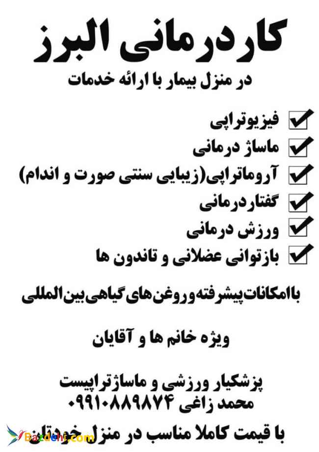انجام خدمات فیزیوتراپی در منزل توسط متخصص مرد دکتر محمد زاغی : 93594824810