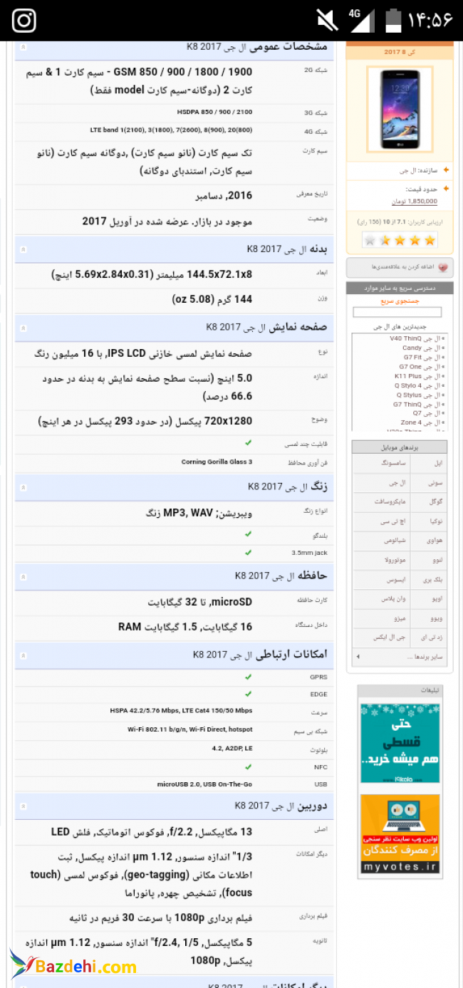 گوشی LG کی 8(2017)