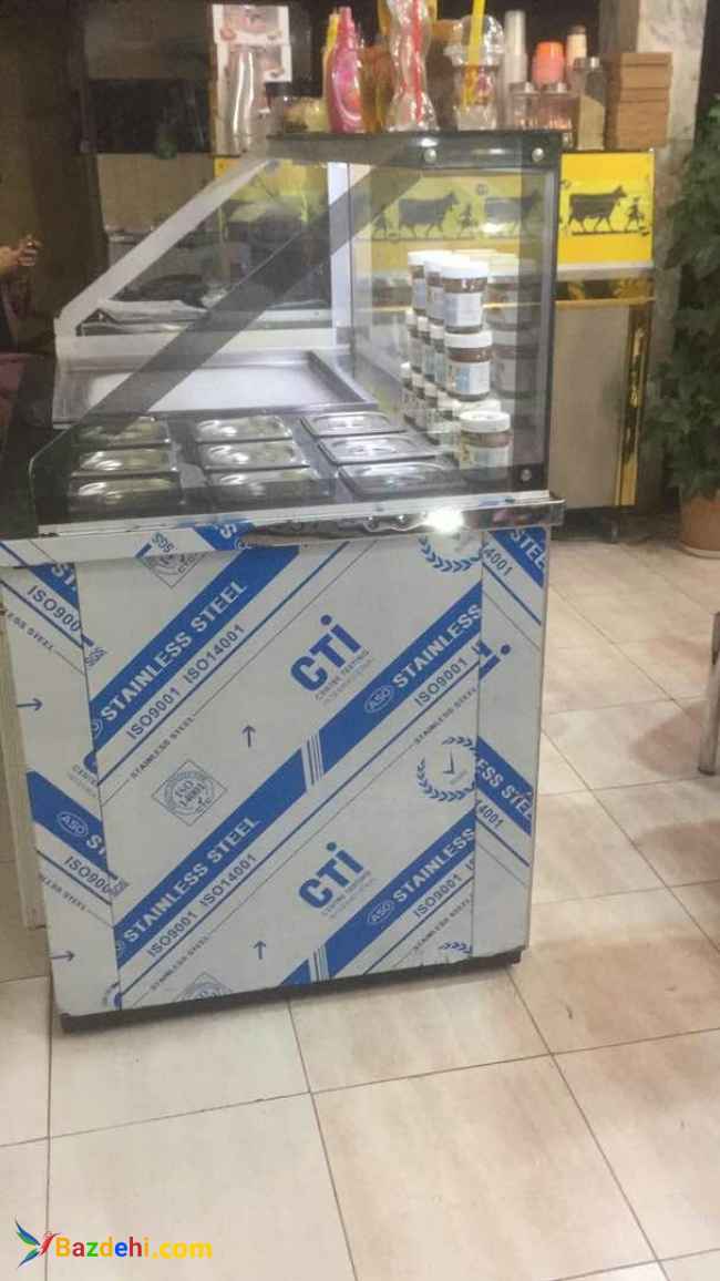 دستگاه بستنی ساز رولی تک پن به همراه یخچال و 9 عدد تاپینگ میوه ابعاد دستگاه : طول 150 سانتی متر عرض 85 سانتی متر ارتفاع 95 سانتی متر ابعاد سینی : 60×55 دارای پدال الکتریکی برای شوک دادن به صفحه سرد در هنگام رول کردن دارای یخچال 200 لیتری با دمای کار بالای صفر جهت نگهداری مایع بستنی دمای صفحه سرد 30- درجه سانتیگراد سیستم برودت با استفاده از 3 عدد کمپرسور مارک سکاپ پیستونی با بازدهی بالا و مصرف انرژی پایین ساخت کشور اسلواکی صفحه سرد با استفاده از استیل سی یو اس 304 مخصوص صنایع غذایی با ضخامت بالا و مقاوم در برابر ضربه وخش دارای شیشه دور دستگاه با روشنایی ال ای دی نواری جهت روشنایی صفحه ها دارای 4 عدد چراغ ترمز دار در زیر شاسی دستگاه بدنه دستگاه با استفاده از استیل خشدار