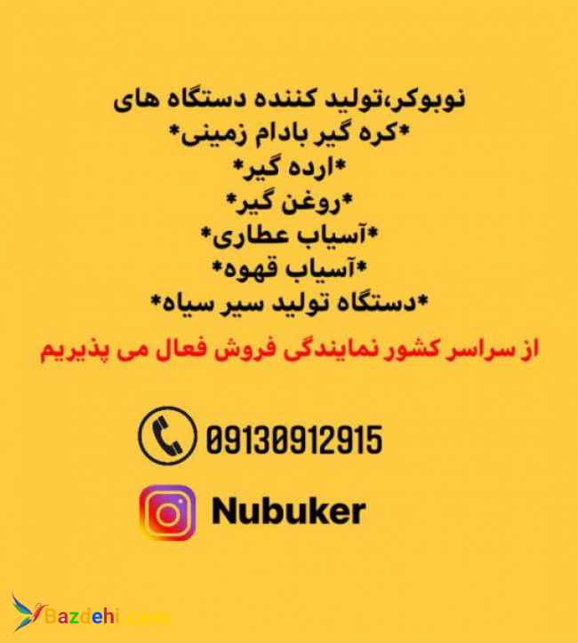 برند معتبر نوبوکر تولید کننده دستگاه های کره گیر بادام زمینی روغن گیر آسیاب قهوه آسیاب عطاری ارده گیر با سنگ مهریز یزد خشک کن میوه و تولید سیر سیاه با دستگاه کره گیر نوبوکر می توانید در حضور مشتری،انواع محصولات زیر را تولید کنید: کره بادام زمینی کره فندق کره پسته کره نارگیل کره بادام کره گردو نوتلا دستگاه های ارده گیر نوبوکر در سایز های مختلف و بازدهی بالا و تماما با سنگ مهریز یزد تولید می شوند. روغن گیر نوبوکر با قابلیت منحصر به فرد و در مدلهای مختلف تولید می شوند و گزینه مناسبی برای استفاده در عطاری ها و فروشگاههای عرضه روغن و محصولات ارگانیک می باشند. با دستگاه روغن گیر نوبوکر می توانید محصولات زیر را تولید کنید: روغن کنجد روغن نارگیل روغن سیاه دانه روغن کرچک روغن بادام تلخ روغن ارگان روغن کتان روغن تخم کدو روغن تخم کتان روغن رازیانه روغن گردو و… آسیابها در چند مدل گهواره ای و چکشی تولید می گردند با خشک کن میوه نوبوکر علاوه بر خشک کردن میوه های مختلف می توان سیر سیاه را تولید کرد *۲سال گارانتی بدون قید و شرط(حتی موتور دستگاه)* *۱۰سال خدمات پس از فروش* *یک هفته تست رایگان* *فروش نقد و اقساط* برای دیدن فیلم دستگاهها از اینستاگرام nubuker بازدید کنید. با کمال میل آماده راهنمایی و پاسخ به سوالات شما هستیم کارگاه:اصفهان،نجف آباد،کمربندی جنوبی نجف آباد،خیابان امام رضا،پلاک ۸۸،نوبوکر 09130912915 سعید خالویی Http://www.nubuker.com این آدرس ایمیل توسط spambots حفاظت می شود. برای دیدن شما نیاز به جاوا اسکریپت دارید Https://www.instagram.com/nubuker 23 بازدید کل ، 1 امروز حلوا ارده آسیاب چکشی ارگانیک کره بادام زمینی ارده کنجد بادام زمینی کره گیری دستگاه کره گیر بادام زمینی دیجی کالا عطاری آسیاب کره گیر بادام زمینی دستگاه کره گیر بادام زمینی ارده گیر روغن گیر آسیاب قهوه نوبوکر آسیاب عطاری بهترین دستگاه کره گیر بادام زمینی خرید دستگاه کره گیر بادام زمینی خانگی دستگاه کره بادام زمینی دستگاه کره بادام زمینی کوچک قیمت دستگاه کره گیر بادام زمینی قیمت دستگاه کره گیر بادام زمینی خانگی روغن کنجد کره گیر کره فندق کره پسته کره گردو کره بادام کره کنجد کره نارگیل بادام زمینی بادام زمینی آستانه بادام زمینی مغان بادام آستانه بادام زمینی آستانه اشرفیه ارده کنجد ارده گیر با سنگ مهریز ارده گیر با سنگ مهریز یزد دستگاه ارده گیر دستگاه ارده دستگاه ارده گیر با سنگ مهریز ادویه آسیاب ادویه آسیاب فلفل آسیاب زردچوبه آسیاب دارچین آسیاب هسته خرما آسیاب سنجد آسیاب گهواره ای قهوه روغن ارده روغن سیاهدانه روغن سیاه دانه روغن کرچک روغن بادام روغن بادام تلخ روغن کاملیا روغن بنفشه دستگاه روغن گیر دستگاه روغن گیر کنجد دستگاه روغن گیر سیاهدانه دستگاه روغن گیر نارگیل روغن نارگیل میوه خشک آجیل گردو فندق پسته بادم خشکبار سیر سیاه تولید سیر سیاه دستگاه تولید سیر سیاه خواص سیر سیاه آجیل فروشی عرضه محصولات ارگانیک لبنیات سنتی عسل روغن زیتون دستگاه کره گیر بادام زمینی دست دوم سیر سیاه چگونه درست می شود سیر سیاه قیمت روغن گیر خانگی روغن گیری در منزل روغن گیر سیاه دانه روغن گیر نارگیل روغن گیر کنجد ارده گیری ارده گیری کنجد ارده گیری خانگی ارده گیری در خانه دستگاه ارده گیری کوچک دستگاه ارده گیری قیمت دستگاه ارده گیری اردکان