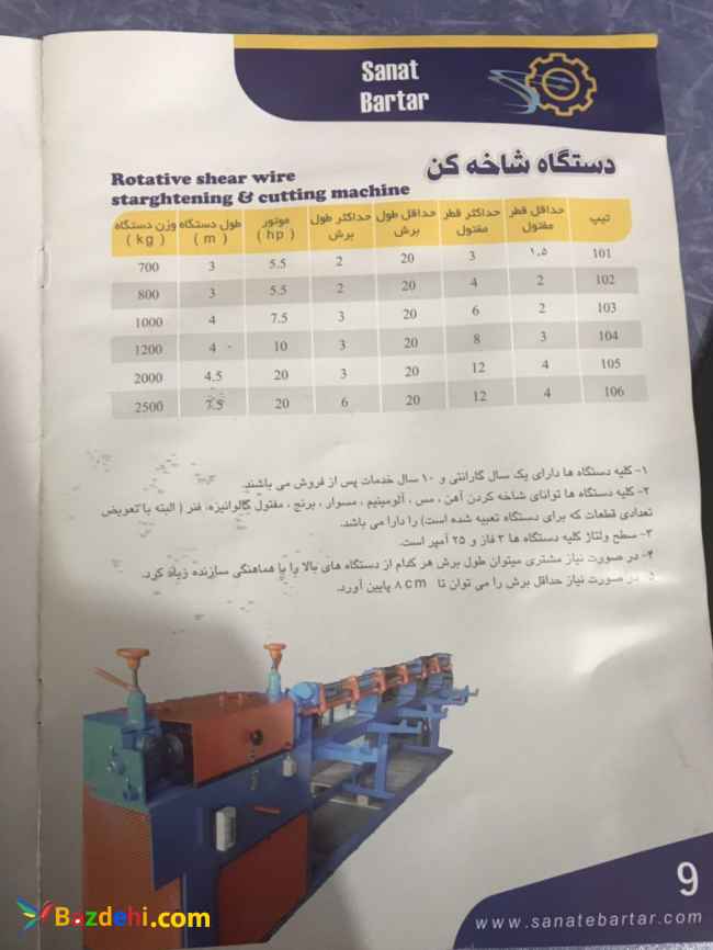 این دستگاه برای تبدیل انواع مفول کلاف به مفتول شاخه که به صورت صاف با اندازه برش خورده دقیق از طول 20سانتی متر تا12مترازقطر مفتول0.90تامیلیگرد30میلی متر مورد استفاده قرار میگیرد. کلیه دستگاه ها دارای دو سال گارانتی و10سال خدمات پس از فروش میباشد