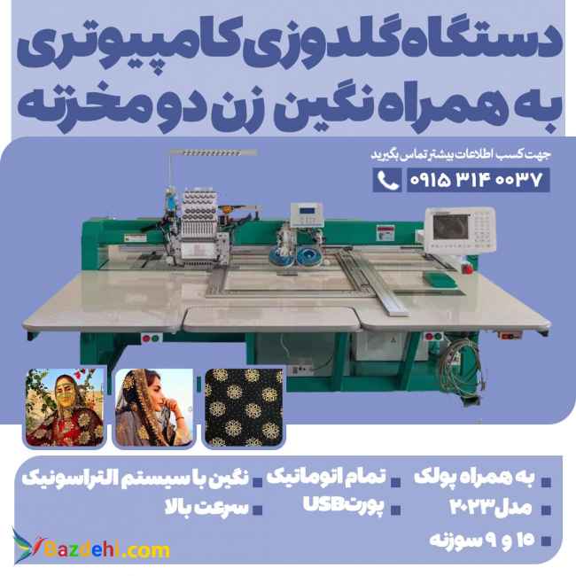دستگاه گلدوزی کامپیوتری به همراه نگین زن دو مخزنه