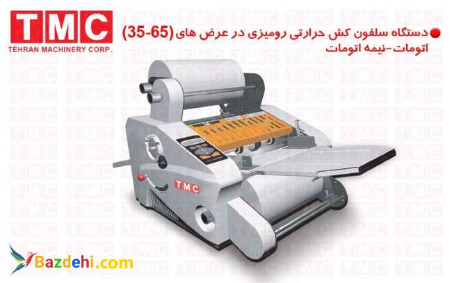 سلفون کش رومیزی و لمینیتور در عرضهای مختلف و مدلهای متفاوت ۱۳۰-۳۵۰ mm : عرض کاغذ ۱۱۰-۹۹۹ mm : طول کاغذ ۸۰-۴۰۰ g/m2 : گرماژ ۳۰۰ m/h : سرعت 160 : حداکثر قطر فیلم 50 Hz (60 Hz) 1450 W : ولتاژ 460×۶۰۰×۵۱۰ mm : ابعاد دستگاه ۴۵ Kg : وزن پشت و رو زن /شیت کن دستی/ لمینیتور آماده تحویل