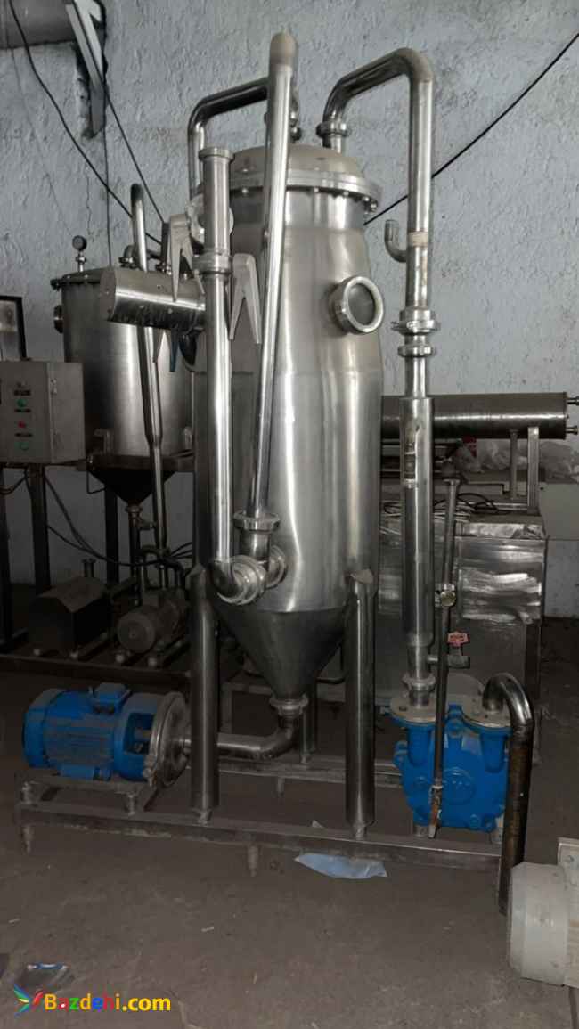 دستگاه بوگیر شیر (دی اریتور) 10 تن شامل شاسی پمپ محصول و پمپ وکیوم بدون تابلو کارکرده و اماده استفاده... فروشنده :مهندس قاسمی پاکان 09125774839 آدرس:تهران اتوبان آزادگان شرق بعد از پل آیت الله سعیدی بعد از خروجی پمپ بنزین علی آباد قاجار نبش اتوبان پلاک 5 (بنگاه مخازن و ماشین آلات استیل قاسمی پاکان) (((مخازن استیل ,تجهیزات و ماشین آلات استیل لبنی,نوشیدنی,غذایی,دارویی,آرایشی بهداشتی,شیمیایی جهت بازدید موجود میباشد))) کاربرد بوگیر شیر چیست؟ :ازدیراتور برای حذف بوی نامطبوع شیر به منظورنگهداری بلندمدت آن استفاده می شود.. دراین سیستم شیر را تا دمای 60 درجه سانتی گراد گرم کرده وسپس وارد مخزن تحت خلاء می نمایند تا در معرض خلاء واقع شود.شیربصورت پاششی و مماس دیواره وارد محفظه دستگاه شده و اکسیژن اضافی آن که حاوی گازهای نامطبوع درشیرمی باشدبه صورت بخارتوسط پمپ وکیوم ازآن خارج می شود. ازدیراتور علاوه بر صنایع لبنی در دیگر صنایع غذایی نیز استفاده می شود. (بنگاه مخازن و ماشین آلات استیل قاسمی پاکان)