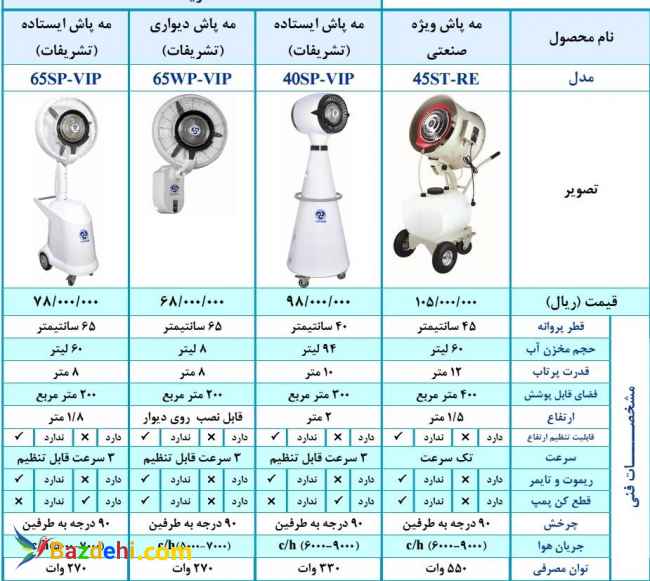 نماینده انحصاری برترین شرکتهای دنیا اولین و بزرگترین مرکز تخصصی پنکه مه پاش و پنکه صنعتی در ایران قیمت 10% بالای لیست می باشد. جهت کسب اطلاعات بیشتر با شماره های زیر تماس حاصل فرمایید: مهندس سوری:09121865671 طراح و مشاور:09177002700