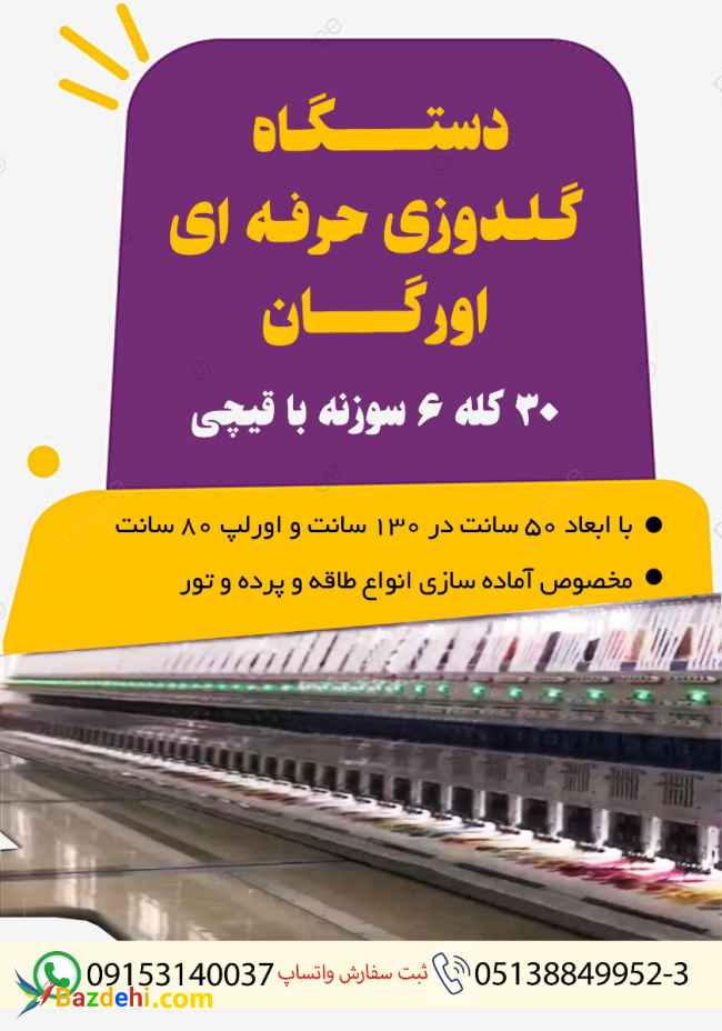 فروش دستگاه گلدوزی حرفه ای اورگان 30 کله 6سوزنه با قیچی