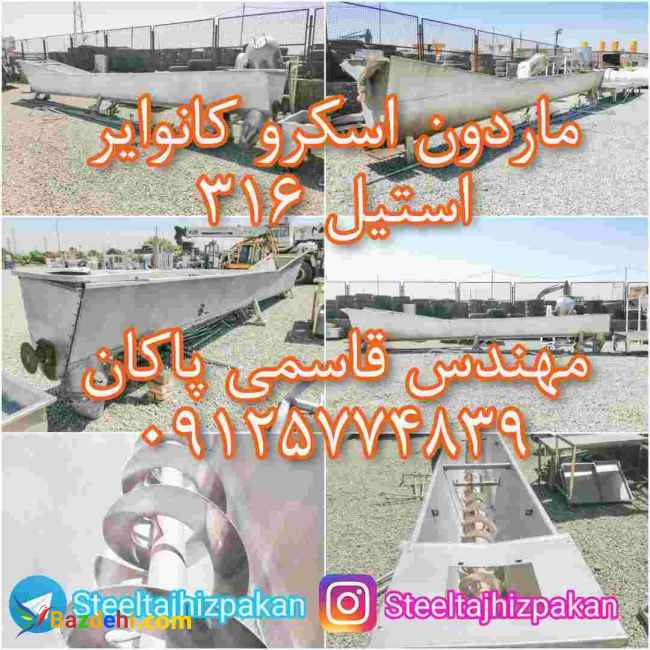 ماردون اسکرو کانوایر استیل 316 ابعاد : طول کانال 10 متر ،عرض بالای کانال 80 سانت,عمق کانال 80 سانت,قطر پره ماردون 40 سانت,قطر شفت ماردون 10 سانت ضخامت بدنه کانال و پره ماردون 5 میلیمتر جنس کانال و شفت و پره ماردون : تمام استیل 316 وضعیت : سالم بدون کوچکترین فرسودگی و خوردگی ,نیاز به موتورگیربکس مورد مصرف : جهت انتقال مواد در کارخانه نمک,کود,مواد معدنی,مواد شیمیایی و غیره ... و همچنین خریدار و فروشنده خطوط تولید مواد شیمیایی : راکتور استیل / رکتور استیل / راکتور ساخت رزین راکتور پایلوت پلنت / راکتور آزمایشگاهی بویلر روغن داغ کولینگ تاور ستون و کندانسور(مبدل) سپراتور و مخزن مونومر لوازم آزمایشگاه و همچنین خریدار و فروشنده انواع مخازن و ماشین آلات استیل کارکرده و دست دوم صنایع غذایی دارویی شیمیایی آرایشی و بهداشتی در سراسر ایران . مهندس قاسمی پاکان 09125774839 (بنگاه مخازن و ماشین آلات استیل قاسمی پاکان) (((مخازن استیل ,تجهیزات و ماشین آلات استیل لبنی,نوشیدنی,غذایی,دارویی,آرایشی بهداشتی,شیمیایی جهت بازدید موجود میباشد)))