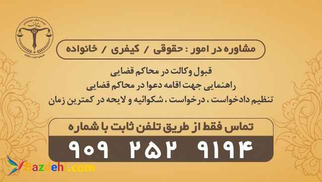 مؤسسه حقوقی سپهر اندیشان راد تابان(سارت) نشانی:قم، میدان جهاد، ابتدای خیابان باجک به سمت حرم مطهر، طبقه فوقانی بانک سامان - آماده ارائه خدمات مشاوره حقوقی در امور کیفری، حقوقی و خانواده - انجام داوری در دعاوی حقوقی - عضو کانون داوری استان قم - تنظیم درخواست، دادخواست، شکواییه و لایحه - قبول رسیدگی دعاوی در دادگاه های مربوطه با همراهی وکلای پایه یک و تراز اول دادگستری - انجام کلیه امور حقوقی شماره تماس: فقط از طریق تلفن ثابت در شهر قم 9092529194