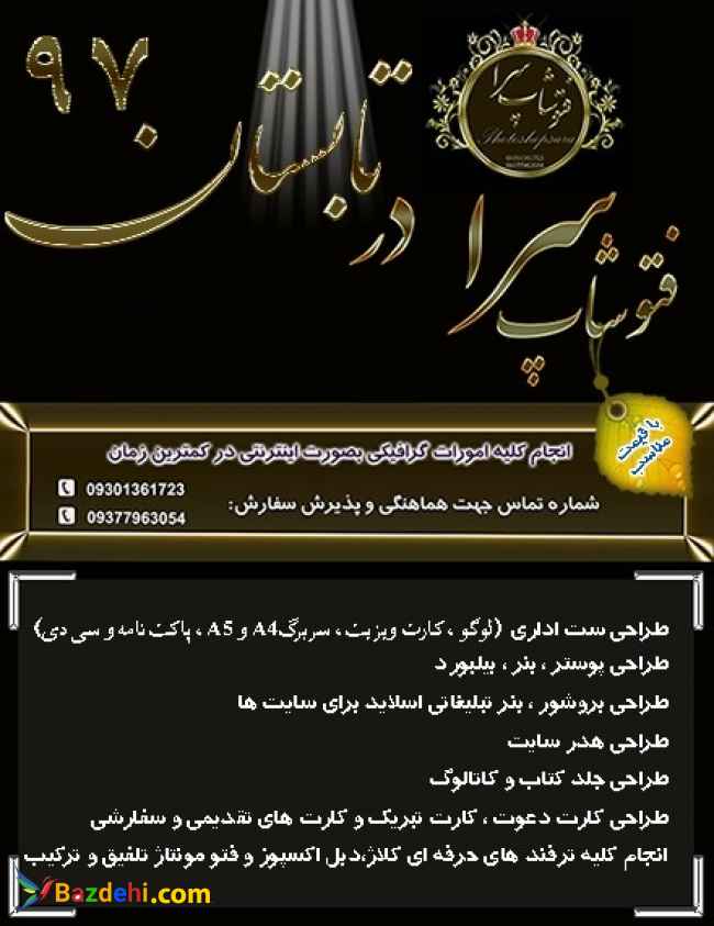 و کلیه امورات گرافیکی بصورت اینترنتی پذیرفته میشود.شماره تماس 09301361723
