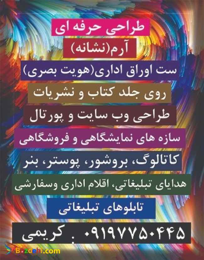 طراحی حرفه ای پوستر،کاتالوگ ، بروشور،آرم، ست اوراق اداری، روی جلد کتاب ونشریات، طراحی وب سایت و پورتال،سازه های نمایشگاهی و فروشگاهی، هدایای تبلیغاتی اقلام اداری و سفارشی