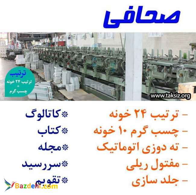 استفاده از جلوه های بصری یکی از عوامل موفقیت تبلیغات است."چگونه گفتن پیام" به اندازه ی خود پیام مهم بوده و این جادوی تبلیغات است. مرکزچاپ وبسته بندی تخصصی "تکسیز" با مدرن ترین ماشین الات چاپ و بسته بندی (چهارو نیم ورقی،لیتوگرافی،افست،سلفون کشی،یووی موضعی،بابس،ویندوپچ،صحافی،جعبه چسبانی) وارتباط مستقیم با چاپخانه ومناسبترین تعرفه قیمت برای همکاران عزیز و کادری مجرب در کنار شماست که در این مسیر بهترین باشید.خدمات مجموعه تکسیز شامل چاپ و طراحی انواع تراکت گلاسه ، تحریر و کاربن لس ،کارت ویزیت،پوستر،بروشور، سربرگ،کاتالوگ،ست اداری،قبض و بلیط،حواله های انبار میباشد.برای اطلاع از قیمت میتوانید با مشاورین زبده ما تماس حاصل فرمایید.