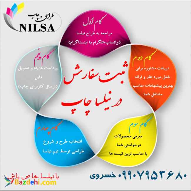 چاپ و تبلیغات نیلسا همیشه و همه جا در دسترس شما,تحویل سفارشات شما درب محل کار شما. ◆برای دیدن نمونه های بیشتر به آدرس اینستگرامی یا تلگرامی درج شده در آگهی مراجعه فرمایید. طراحی انواع کارت ویزیت -تراکت -بنر -پوستر -فاکتور -سربرگ -پست و استوری اینستاگرام و..... پذیرفته میشود. *طراحی به صورت تحویل فایل طراحی شده با هزینه مناسب انجام می شود.* هر ماه از تخفیفات ویژه نیلسا بهره مند شوید. با نیلسا بدرخشید✔ 09907953680 خسروی