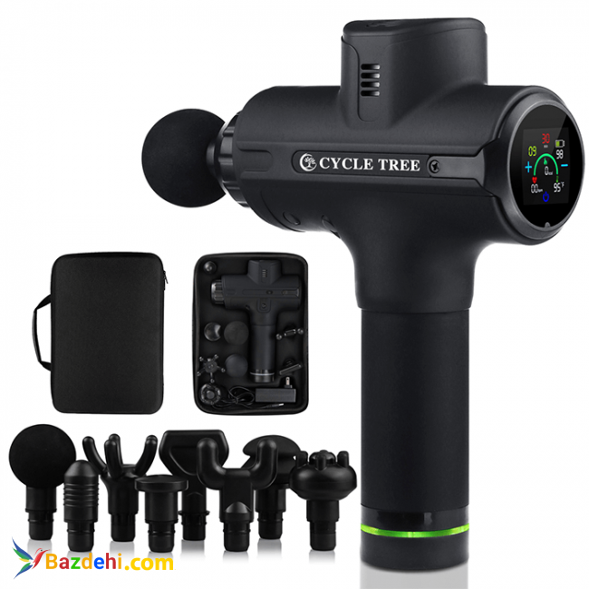 نام:ماساژور تفنگی برند:سایکل تیری Cycle tree مدل :MG-02 قابلیت استفاده:خانگی/سالن های ورزشی /فیزیوتراپی / سالنهای ماساژ جنس و مواد ساخت:آلیاژ آلومینیوم + PP + ABS مواد سر ماساژور:PP + EVA محدوده سرعت:1800-3500 دور در دقیقه تعداد سرعت:9 سرعت قابل تنظیم صفحه نمایشگر:LCDلمسی نوع باتری:باتری لیتیوم با انرژی بالا قابل جدا شدن ظرفیت باتری:قابل شارژ5200mAh زمان شارژ:3-4 ساعت زمان کار:حدود8 ساعت