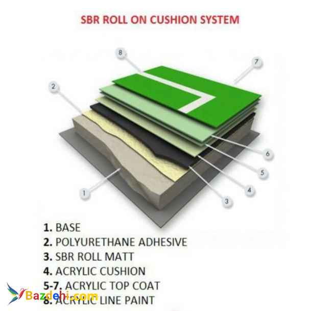 کفپوش ورزشی،کفپوش لاستیکی رولی،کفپوش یکپارچه زمین تنیس و والیبال و بسکتبال،تارتان