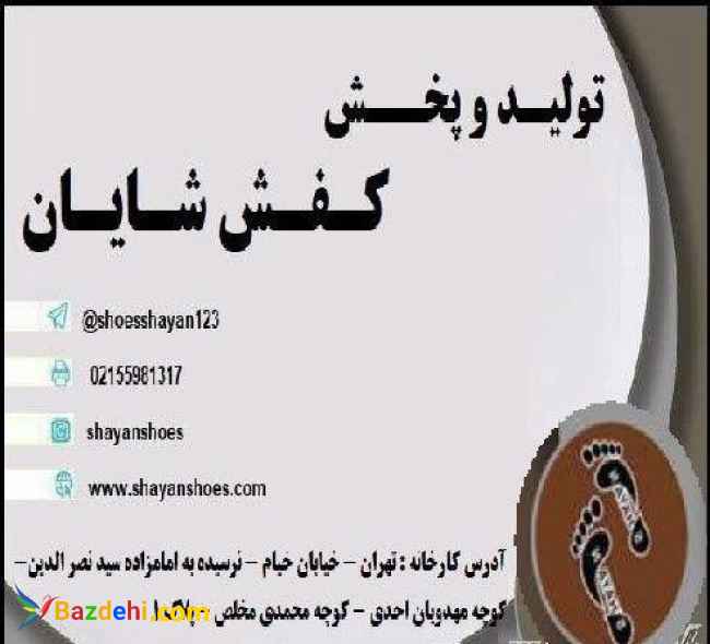 تولیدی کفش شایان پخش کیف و کفش زنانه ارزان تولید انواع کیف و کفش درخیام تولیدی کفش در مرکز تهران تولید کننده انواع کیف و کفش تولیدی کفش های زنانه و مردانه مجلسی و اسپورت و بچه گانه و تولید کننده کیف های زنانه و مردانه در انواع طرح های مجلسی و اسپرت مجموعه تولیدی کیف و کفش شایان به عنوان یکی از پیشگامان صنعت کیف و کفش در ایران با سالها سابقه در زمینه تولید این محصولات در حال حاضر با عرضه بسیار متنوع انواع کیف و کفش های حراجی ارزان قیمت آمادگی همکاری با تمامی کسبه محترم در سراسر ایران و فروشگاه های عرضه کیف کفش ،تک فروشی ها ، عمده فروشی ها را دارد. محصولات تولید شایان : • انواع کفش های زنانه پاشنه دارمجلسی • انواع کفش های زنانه مجلسی پاشنه 3 و 7 • انواع کفش های زنانه راحتی ( کفش کالج ) • انواع کفش مردانه ( کفش مجلسی و راحتی ) • انواع کفش های دخترانه پاشنه دار و تخت • انواع صندل و دمپایی ارزان قیمت • انواع کیف های مدرسه ، کوله پشتی تمامى محصولات شایان داراى گارانتى كيفيت بوده تولیدی شایان در تلاش است مطلوبات مشتريان خود را به نحو احسنت براورده نموده و خاطره خوشى را براى آن ها رقم زند یه تولیدی کفش فروشی که با سود خیلی کم به شما کفش میفروشه اینستاگرام: https://www.instagram.com/shayanshoes کانال تلگرام : http://t.me/shoesshayan123 وب سایت : http://shayanshoes.com