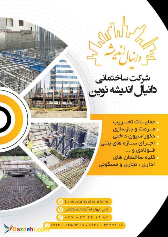 مرمت و بازسازی ساختمانهای اداری تجاری مسکونی ، طراحی محاسبه و اجرای سازه های فولادی و بتنی، راه سازی و جاده سازی فرودگاه ، راه آهن و ....