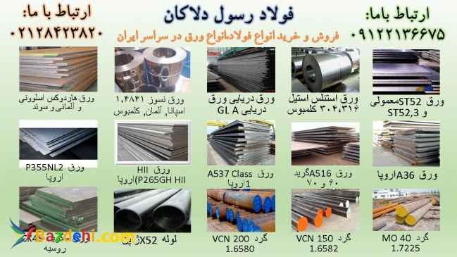 به استحضار تولیدکنندگان محترم صنعت کشور میرسانیم ارتباط با ما: 09122136675-02128423820 فولاد رسول دلاکان به مدیریت جناب آقای رسول دلاکان با سابقه ایی 20 ساله و تجربه ایی گرانبها در زمینه عرضه انواع آلیاژ فولادی، و فولاد ضد سایش،ورق دریایی، ورق نسوز، ورق مخازن بخار، در سطح کشور فعالیت مینماید: برخی از محصولات از قبیل:فولادهای آلیاژی ورق های آلیاژی از ضخامت به میل: 3 میل الی 250 میل هم به صورت برش و هم به صورت برگ کامل ، میلگرد ضخامت به میل: 8 الی 2000لوله تسمه استاندارد ST52ورق لوله میلگرد تسمه موجودA516 6R 60-70ورق میلگردفولاد آلیاژیفولاد ضد سایش هاردوکس 400 - 450 - 500-CK45میلگرد های هاردکروم جهت جک لودر، لوله های سیلندری مخصوص جکفولاد نسوز1/4841بصورت ورق میلگرد لولهورق A516 G60-7016MO315MO3بصورت ورق ،ورق میلگرد لوله P265GH HiiP355NL2S355 joS275 jrورق میلگرد لوله ST52A361/72181/72251/17401/25101/20801/24361/23791/2510A387 GR11 Class1A537 Class1Weldox700-110041404130ورق های دریاییA285 (CA283 (Cفولاد آلیاژیSPK 1/2080MO40 1/7225VCN150 1/6582تسمه فولاد فنر 7176/ 1 جهت ساخت تیغه های آسیاب لطفا جهت اطلاع از قیمت و نوع محصولات با شماره زیر تماس حاصل فرمائید: ارتباط با ما : 09122136675-02128423820 ورق هاردوکس-هاردوکس-ورق دریایی-ورق مخازن بخار-ورق سیاه-ورق دریایی-ورق ضد سایش-ورق2.5-ورق40میل-ورق50 میل-ورق ضخیم-ورق500-ورق400-ورق450-ورق420-ck45-st52-st37-ck46-ورق آتشخوار-ورق نسوز-ورق روسی-ورق چینی-ورق اکراینی-قیمت ورق-قیمت روز ورق-ورق آجدار-فولاد-فولاد آلیاژی-فولاد ضدسایش-فولاد مبارکه-فولاد اهواز-فولاد یزد-قیمت فولاد-قیمت روز فولاد-انواع ورق-انواع فولاد-لوله-لوله آلیاژی-لوله آتشخوار-میلگرد-میلگرد ساده-میلگرد غیر آجدار-قیمت میلگرد-قیمت روز میلگرد-نبشی-نبشی و ناودانی-قیمت نبشی-پروفیل-قوطی-تسمه-تسمه فولاد فنر-عمده فروشی-خرید-فروش-hardox