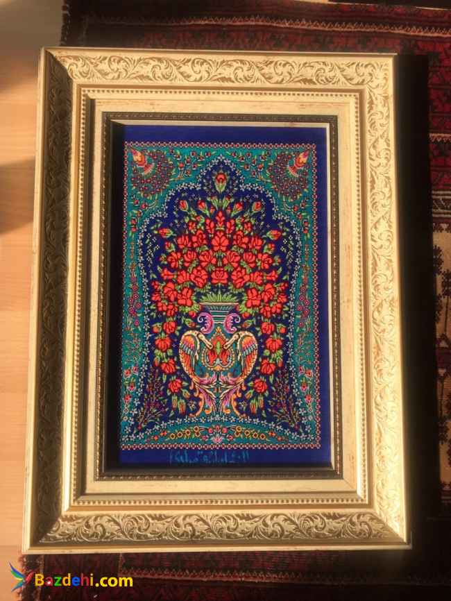 تابلو تمام ابریشم گلدانی دستبافت 30*45 قم