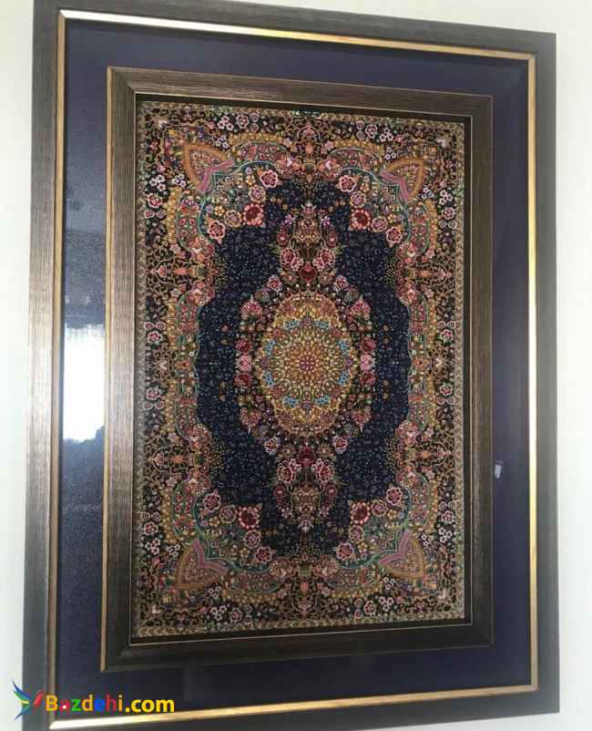 تابلو فرش تمام ابریشم دستبافت قم ٦٠*٩٠استاد بافت