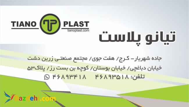 تهران جاده شهریار کرج شهرک صنعتی زرین دشت خیابان دباغچی خیابان بوستان کوچه بن بست رز پلاک 53 شرکت تیانو پلاست 02146893418