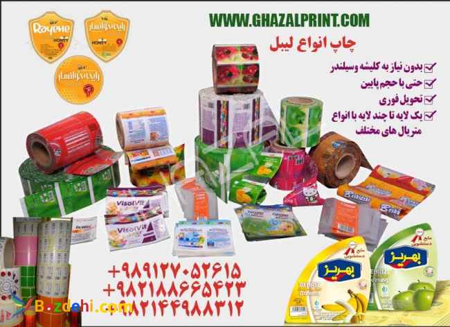 غزل پزینت را در اینترنت و اینستا جستجو کنید. ما همراه شماییم. چاپ انواع لیبل شست و رول با انواع متریال کاغذ گلاسه، متالایز، صدفی، متال، ترنسپرنت، پی وی سی، ضد آب، گچی، سیلیکونی، اموال، هولوگرام چاپ انواع لفاف بسته بندی انواع ساشه سس و نسکافه، شیرینک، پی وی سی شیرنک، opp bop, pp
