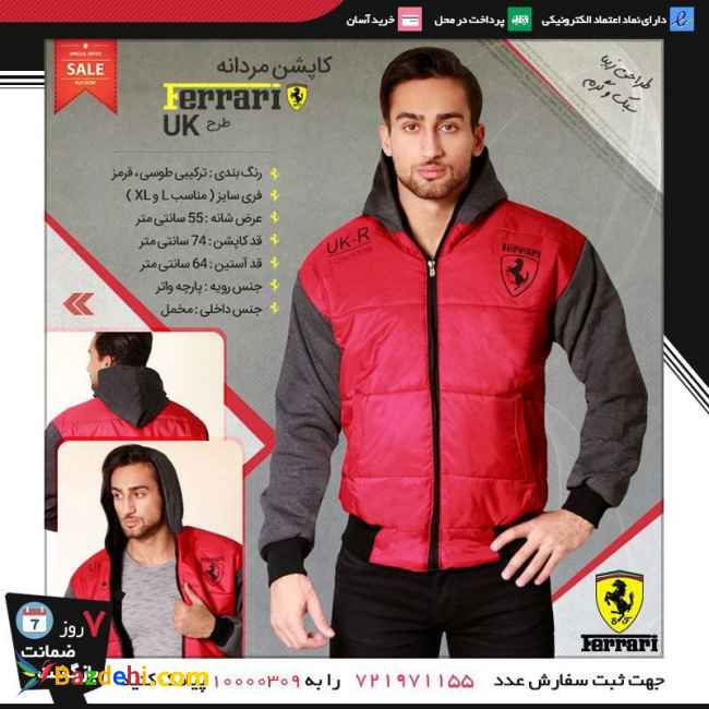 حراج استثنایی با قیمت باور نکردنی کاپشن مردانه Ferrari فقط 119 تومان فری سایز (مناسب L/XL) شیک، گرم و سبک شماره تماس09910295809
