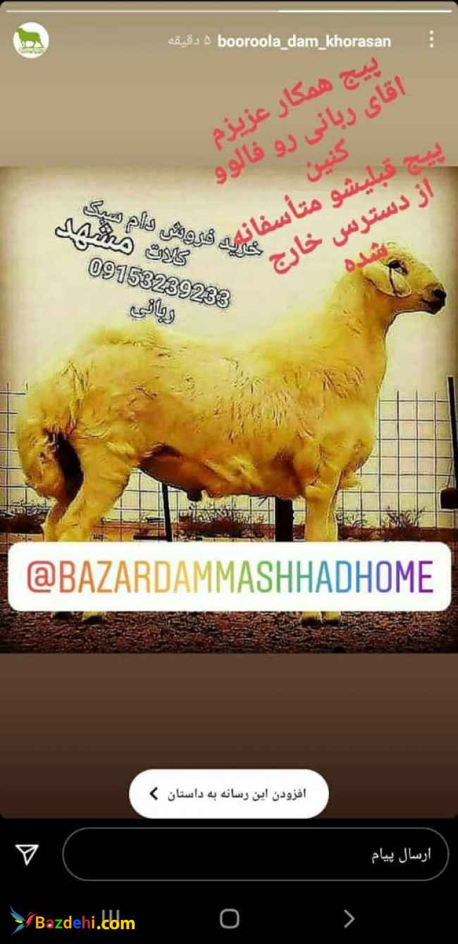 خرید فروش دام سبک مشهد .فعال در بازار دام مهد طوس مشهد .اولین وبزرگترین مرکز فروش گوسفند داشتی خراسان پیج قبلی با۳۳هزار عضو فعلا مسدود است در پیج جدید در خدمتیم https://instagram.com/bazardammashhadhome?igshid=4r4jmp3fh2ml علی ربانی آدرس: مشهد شهرک طرق خیابان شهید رجایی بین رجایی ۳۱و۳۳ شماره تماس: 05134723228 همراه: 09153239233 ایمیل: این آدرس ایمیل توسط spambots حفاظت می شود. برای دیدن شما نیاز به جاوا اسکریپت دارید اینستاگرام: https://instagram.com/bazardammashhadhome?igshid=4r4jmp3fh2ml بازار دام مشهد حومه گوسفند داشتی مشهد دامداری مدرن گوسفند نژاد افشار قزل کردی و.. گوسفند همو و هترو علی ربانی چوبدار قیمت روز دام مشهد ربانی بازار دام کلات مشهد پیش بینی قیمت دام زنده در سال ۱۴۰۰ پیش بینی قیمت دام زنده در سال ۹۹ آیا قیمت دام زنده افزایش می یابد بازار دام مشهد پیش بینی قیمت دام زنده در زمستان ۹۹ قیمت دام کشتار قیمت دام زنده شهرداری افزایش قیمت دام زنده کشتارگاه مشهد تپه سلام خرید گوشت از کشتارگاه مشهد بازار گوسفندان مشهد بازار دام مشهد امروز بازار دام مهد توس مشهد مرکز خرید دام زنده مشهد بازار دام سنگین مشهد دیوار دام مشهد میش هترو عکس قوچ هترو قوچ ژن دار هومو عکس قوچ هومو قیمت اسپرم قوچ هومو مجتمع افشار ژن هترو یعنی چه قزل افشار اصل تفاوت افشار و قزل افشار قره قزل افشار نژاد شال بهتر است یا افشار قیمت میش قزل افشار قوچ قزل افشار قیمت میش افشاری اصلاح نژاد شده قوچ قزل افشار اصل قوچ قزل سیاه قیمت میش قزل افشار قوچ افشاری اصل گوسفندان قزل افشار قره قزل افشار میش قزل افشاری فروشی بزرگترین دامداری گوسفندی جهان دامداری مدرن گوسفندی دامداری سنتی دامداری صنعتی در ایران بهترین دامداری ایران بزرگترین دامداری جهان دامداری سنتی چیست مجوز دامداری سنتی دامداری سنتی گوسفندی آموزش دامداری سنتی دامداری سنتی مازندران تفاوت دامداری سنتی و صنعتی ساخت دامداری سنتی مبلغ وام دامداری سنتی بزرگترین گاوداری صنعتی ایران دامداری صنعتی دام سبک نقشه گاوداری صنعتی دامداری صنعتی کوچک فیلم گاوداری صنعتی شیری بزرگترین گاوداری ایران بزرگترین گاوداری شیری جهان نقشه دامداری صنعتی گوسفندی دامداری مدرن در ایران نقشه ساخت دامداری گوسفندی pdf بزرگترین دامداری گوسفندی ایران بزرگترین گاوداری شیری جهان دامداری مدرن در ایران دامداری مدرن در ایران نقشه دامداری صنعتی گوسفندی نقشه ساخت دامداری گوسفندی pdf ساختمان دامداری گوسفندی بزرگترین دامداری گوسفندی دامداری سنتی دامداری صنعتی در ایران اصول دامداری قیمت میش چند قلو زا قزل افشار اصل قوچ افشاری اصل خرید بره افشاری قیمت میش افشاری اصلاح نژاد شده قیمت میش شال کشتارگاه مشهد تپه سلام خرید گوشت از کشتارگاه مشهد بازار گوسفندان مشهد بازار دام مشهد امروز بازار دام مهد توس مشهد مرکز خرید دام زنده مشهد بازار دام سنگین مشهد دیوار دام مشهد بازار دام مشهد بازار دام عسکریه مشهد بازار دام زنده مشهد بازار دام مهد توس مشهد بازار گوسفندان مشهد بازار دام مشهد امروز دیوار دام مشهد بازار گاو مشهد خرید گوشت از کشتارگاه مشهد پیش بینی قیمت دام زنده بازار دام عسکریه مشهد دیوار دام مشهد بازار دام مهد توس مشهد کشتارگاه مشهد تپه سلام بازار دام مشهد امروز