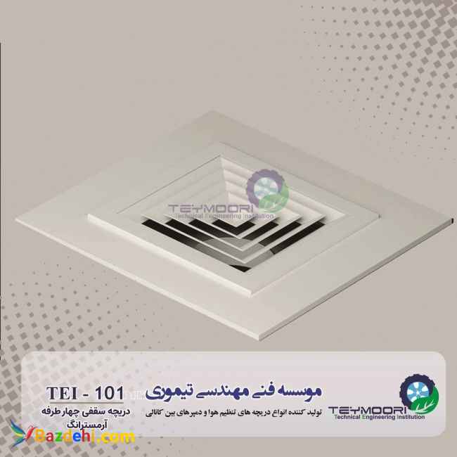 شامل : • دریچه آرمسترانگ چهار طرفه • دریچه آرمسترانگ دیفیوزر گرد تخت • دریچه آرمسترانگ دیفیوزر گرد برجسته • دریچه آرمسترانگ دیفیوزر زنبوری گرد • دریچه آرمسترانگ دیفیوزر چهار طرفه موارد مصرف مخصوص تایل های سقف کاذب از نوع آرمسترانگ با اندازه های 60*60 و 62*62 سانتیمتر. قابلیت ها: قابلیت نصب بسیار آسان و انعطاف فراوان با استفاده از تبدیل هایی با ابعاد مختلف جهت اتصال به کانال ظاهر زیبا و دکوراتیو جهت انواع مصارف خانگی، اداری، رستوران ها و هتل ها.