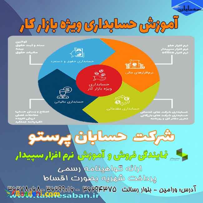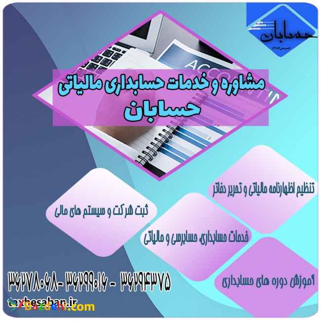 شرکت خدمات مالیاتی و حسابداری حسابان پرستو نمایندگی رسمی فروش و آموزش نرم افزار سپیدار خدمات فروش و آموزش، ارائه مشاوره، نصب و راه اندازی و آموزش نرم افزار سپیدار جهت دریافت اطلاعات بیشتر با شماره های زیر تماس بگیرید. تلفن تماس: 021-36299016 021-36294375 09104526950 09367547272 وب سایت: http://taxhesaban.ir/