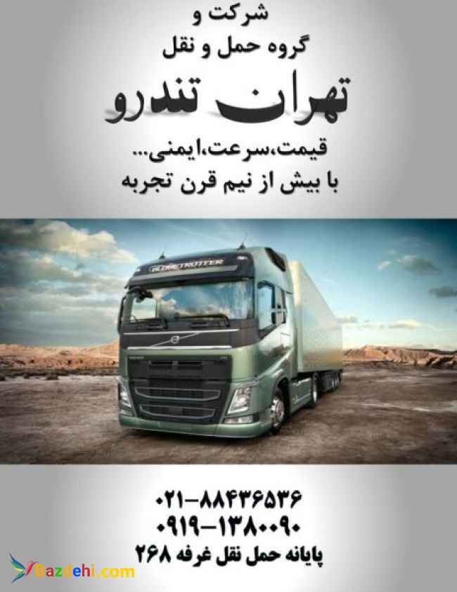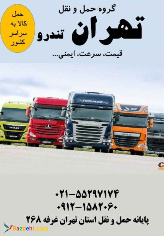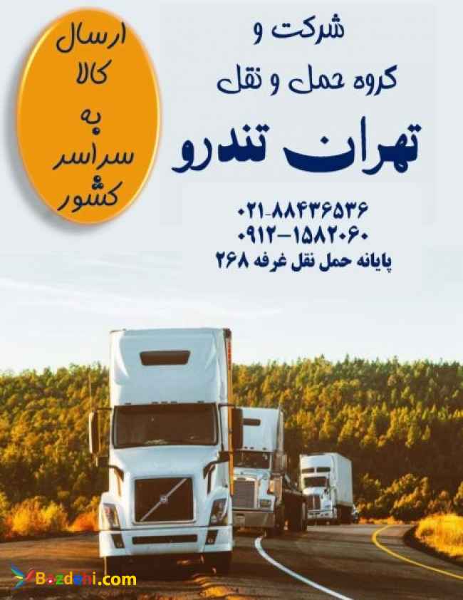 باربری جاده ای،حمل کالاهای تجاری،صدور بارنامه دولتی و شهری،مشاوره در انتخاب ناوگان و… تلفن همراه: 09191380090 تلفن ثابت:02155297174 آدرس اینستاگرام: https://instagram.com/tehran_tondro?igshid=YmMyMTA2M2Y= آدرس:تهران،جاده ساوه ، پایانه مرکزی حمل بار تهران غرفه ۲۶۸ سرعت ، قیمت ، ایمنی … با سلام درخصوص حمل بار و کالای تجاری شما از استان تهران و البرز به تمام نقاط کشور : ☑️ قیمت مناسب ☑️ صدور بارنامه دولتی و شهری ☑️تحت پوشش بیمه ایران ☑️حمل تخصصی سازه های ترافیکی ☑️ارسال ناوگان مجهز به چادر و تجهیزات لازم ☑️مشاوره در انتخاب ناوگان مناسب ☑️استفاده از رانندگان بومی و آشنا به محل تخلیه ?ناوگان : ?انواع خاور ?تک ،?جفت ?انواع تریلی (کفی ،لبه دار،ترانزیت،کشویی) حمل و نقل حمل و نقل جاده ای باربری جاده ای باربری از تهران به شهرستان باربری به تمام نقاط کشور حمل بار از تهران حمل بار کالاهای تجاری حمل تخصصی سازه های ترافیکی حمل بار با پوشش بیمه صدور بارنامه دولتی مشاوره در انتخاب ناوگان مناسب حمل بار ترافیکی ارزان ترین باربری تهران قیمت حمل بار به شهرستان بهترین خدمات باربری حمل بار تهران به شهرستان حمل بار بین شهری برابری تهران به شهرستان تعرفه حمل بار حمل سازه های فلزی خدمات حمل بار ترافیکی حمل تخصصی سازه های فلزی حمل محموله سنگین و فوق سنگین باربری با بیمه نامه حمل بار با انواع خاور حمل بار با انواع تریلی حمل بار با تریلی کشویی حمل بار با تریلی لبه دار حمل بار با تریلی ترانزیت