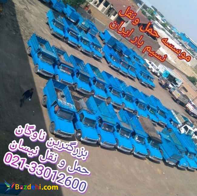 موسسه حمل و نقل نسیم بار ایران بزرگترین دارنده نیسان های برگشتی شهرستانها حمل و نقل کالا از تهران و حومه به اقصی نقاط ایران با بیمه و بارنامه تحت پوشش بیمه مدنی ایران کد 237 اتحادیه کامیون داران بی واسطه دسته اول با نازلترین قیمتها با کادری مجرب در حمل و نقل جادهای کل کشور آماده خدمات رسانی به تمامی صاحبان کالا، شرکتها، ادارات دولتی و خصوصی با قرارداد رسمی نیسان برگشتی مشهد، اصفهان، شیراز، اهواز، کرمانشاه، کرمان، سنندج، تبریز، ارومیه، اردبیل، گیلان، مازندران، گلستان، یزد، ایلام، هرمزگان، سیستان و بلوچستان، کهکیلویه و بویراحمد، مرکزی، لرستان، همدان... همه روزه موجود هست 09127694965 09127272153 36624180 36624195 33012600