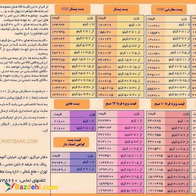 دیگر نیازی به رفتن به پست ندارید!جمع اوری مرسولات و بسته های پستی درب خانه و محل کار با پیک رایگان و دریافت انی کد رهگیری همراه با پیامک کد برای فرستنده و گیرنده ؛زیر نظر اداره پست با روشهای ارسال متفاوت و با قیمت های مناسب ؛خدمات پیک موتوری درون شهری با پیک بادپا؛خدمات ارسال کالا از طریق ترمینال بصورت درب به درب و ۲۴ساعته برای تهران