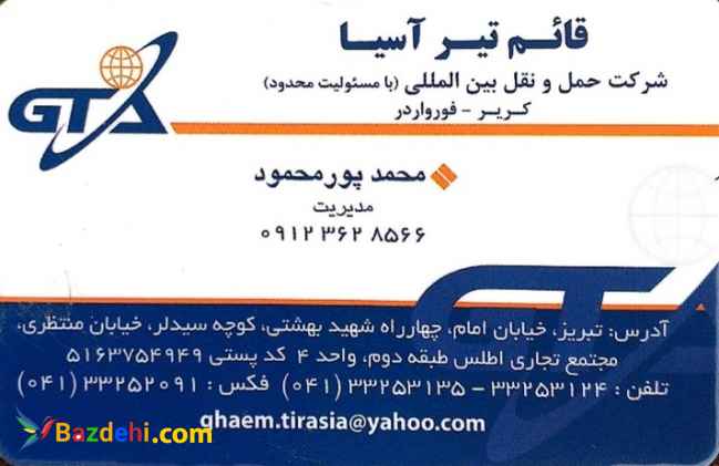 شرکت حمل و نقل بینالمللی قائم تیر آسیا حمل بار به ترکیه و واردات از ترکیه حمل باربه آذربایجان حمل بار به گرجستان حمل بار به ارمنستان حمل بار از تمامی نقاط جهان بخصوص کشورهای همسایه و بالعکس ترانزیت خارجی کالا : حمل بارگروپاژ و بارهای سنگین وفوق سنگین از ترکیه وسایر کشورهای همسایه حمل بارهای دربستی از ترکیه .کایسری استانبول ازمیر انکارا کونیا انتپ اکسارا وسایر نقاط ترکیه وحمل باازسوریه ،حمل بار از آلمان حمل بار از ایتالیا حمل بار از سوئیس حمل بار از حمل بار ازگرجستان حمل بار از ازبکستان حمل بار از کشور های اروپایی و آسیایی فعالیت می کند حمل زمینی - جهت حمل کالای خارجی خود از کلیه نقاط دنیا به صورت، زمینی با ماتماس بگیرید شرکت حمل و نقل بین المللی قائم تیرآسیابا بیش ازنیم قرن سابقه درخشان در زمینه حمل و نقل بین المللی به روشهای مختلف شامل حمل زمینی بار توسط کامیونهای ملکی واستیجاری دربستی و خرده بار( گروپاژ ) ،وهمچنین امور پشتیبانی مانند انبار داری ، بسته بندی ، تشریفات گمرکی و سایر موارد تجارب قابل توجهی کسب و با در اختیار داشتن مدیران و کارکنان با تجربه و مجرب آماده ارائه خدمات میباشد سر فصل کلیات تواناییها و امکانات شرکت به شرح ذیل میباشد: - حمل ترانزیتی کالا از هر یک از مرزهای ورودی کشور به سایر شهرها و نیز به خارج از کشور. - حمل زمینی از اروپا به ایران ، کشورهای آسیای میانه وبلعکس توسط کامیون دربستی و خرده بار( گروپاژ ) - ترخیص کالاهای صادراتی از هر یک از گمرکات کشور -حمل بارهای گروپاژ: حمل بار از ترکیه ، حمل بار از آلمان حمل بار از ایتالیا حمل بار از سوئیس حمل بار از گرجستان حمل بار از چین حمل بار از تاجیکستان حمل بار از کشور های اروپایی و آسیایی حمل بار به ترکیه حمل بار به آلمان حمل بار به ایتالیا حمل بار به نروژ حمل بار به گرجستان حمل بار به ازبکستان حمل بار به تاجیکستان حمل بار به افغانستان حمل بار به ترکمنستان حمل بار به کلیه کشور های اروپایی و آسیایی حمل زمینی ) سوابق: قرارداد با شرکت ها و کارخانه های معتبر. ایران خودرو. سایپا .اذرشیشه.شیشه سهند.کارخانه شیشه لیا قزوین وشیشه اردکان.تراکتور و ده ها شرکت دیگر که هر یک دارای چندین شعبه در کشور خود و اقصی نقاط دنیا دارند و لذا این شرکت دفتر نمایندگی رسمی همگی شرکت های نامبرده در ایران می باشد. - دفاتر شرکت: تبریز، بندر عباس ، بازرگان و همچنین دارای نماینده گان فعال در 36 شهر و گمرکات کشور مانند بازرگان ، بوشهر ، بندر امام ، تبریز ، بندر انزلی ، نوشهر ، دو قارون ، سرخس اینجه برون، عسلویه ، شیراز وسایر شهرها. عضویت ها:. - عضویت سازمانهای مهم حمل و نقل جهانی از جمله انجمن بین المللی فورواردری ( fiata ) ، iru اتاق بازرگانی و صنایع و معادن ایران و انجمن صنفی شرکتهای حمل و نقل بین المللی ایران. با یکبار امتحان مشترک ما خواهید مدیریت محمد پورمحمود ادرس تبریز خیابان امام ، چهار راه شهید بهشتی ، کوچه سید لر ، خیابان منتظری ، مجتع تجاری اطلس طبقه دوم ، واحد ۴ ، 04133253124 04133253135 09123628566 صادرات و واردات کالا #کارت بازرگانی#حمل شیشه جات #حمل کاشی #صادرات میلگرد #صادرات دستگاه #صادرات پتروشیمی #صادرات شمش #صادرات سدیم #واردات چوب #واردات از اروپا #صادرات به اروپا #صادرات کارخانه #صادرات #بازرگانی #تجارت#حمل کالا#واردات #واردات کالا#ترخیص کالا#صادرات#صادرات کالا#صادرات به ترکیه#واردات از ترکیه #حمل بار به ترکیه #حمل بار به گرجستان#حمل بار به اروپا #حمل کالای خطرناک #حمل با کانتینر چادری #حمل با کانتینر یخچالی # ترخیص کار حرفه ای ترخیص کار گمرک چارت مراحل ترخیص کالا از گمرک چگونه شرکت ترخیص کالا بزنیم حمل بار از اصفهان به افغانستان حمل بار از تبریز به ترکیه حمل بار از ترکیه با اتوبوس حمل بار از ترکیه به ایران زمینی حمل بار از ترکیه به دبی حمل بار از مشهد به افغانستان حمل بار با قطار به ازبکستان حمل بار به باکو از تبریز حمل بار به ترکمنستان حمل بار به سوریه حمل بار به سوئد 