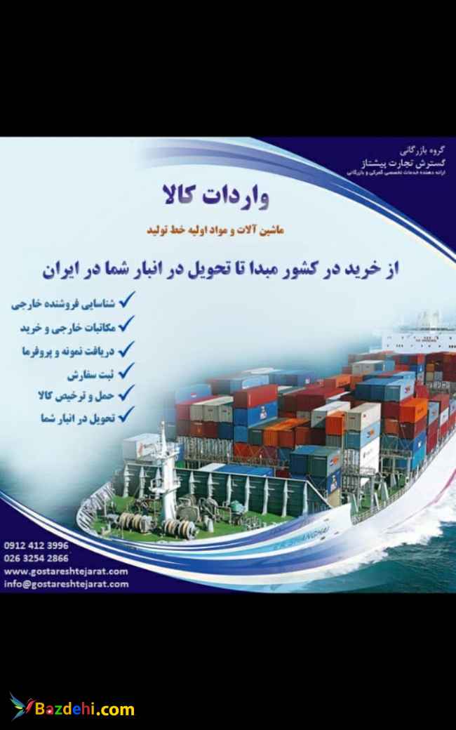 کارگزار رسمی گمرک ایران ● عضو اتاقهای بازرگانی ● عضو سندیکای کارگزارن گمرک ● ترخیص کالا ی وارداتی و صادراتی بدون پرداخت عوارض گمرکی / بدون تعهد ارزی ● واردات و صادرات خطوط تولید و مواد اولیه تولید و کالای تجاری از تمامی مبادی زمینی , دریایی , هوایی ● مشاوره تهیه و تنظیم اسناد تجاری / ثبت سفارش بازرگانی / اخذ مجوزهای مربوط به واردات و صادرات ● نیروهای متخصص در ترخیص کالاهای صنعتی , شیمیایی ,الکتریکی با 20 سال تجریه و حدود 3000 قلم کالای وارداتی و صادراتی ● حمل و نقل داخلی و بین المللی صادراتی و وارداتی از تمامی کشورها به صورت درب به در ب سریع ومطمئن و بصرفه ●●《《《 ثبت رایگان اعلامیه فرصتهای تجاری فقط برای صادر کنندگان و وارد کنندگان در سایت www.gostareshtejarat.com 》》》 نام و نام خانوادگی : محمد عباسیان تلفن ثابت : 02632542866 تلفن ثابت : 02632537517 تلفن همراه : 09124123996 تلفن همراه : 09353631365 ایمیل : این آدرس ایمیل توسط spambots حفاظت می شود. برای دیدن شما نیاز به جاوا اسکریپت دارید وبسایت : http://www.gostareshtejarat.com تلگرام : https://t.me/gtp_co اینستاگرام : https://www.instagram.com/gostaresh_tejarat_co گسترش تجارت ترخیص کالا واردات صادرات بازرگانی